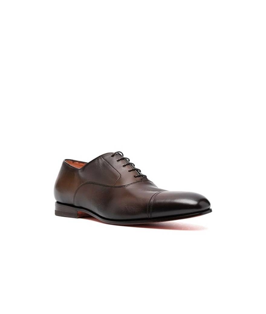 Pour les chaussures habillées, comme les Richelieux Carter en cuir pour homme Santoni ou mocassins en cuir poli, la précision est encore plus importante. Ces modèles, souvent portés dans un cadre professionnel ou lors d’événements formels, doivent offrir un ajustement parfait sans compression excessive. Le cuir de qualité Santoni a l’avantage de s’assouplir avec le temps, mais le bon choix de pointure reste essentiel pour garantir élégance et confort sur la durée.
